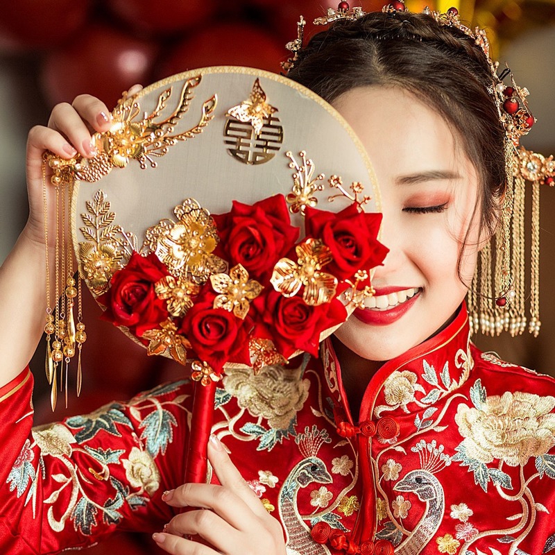 Z&S Chinese Bride Hand-held Fan Wedding Tik Tok Rose Group ...